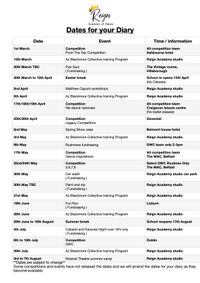 Dates for your Diary